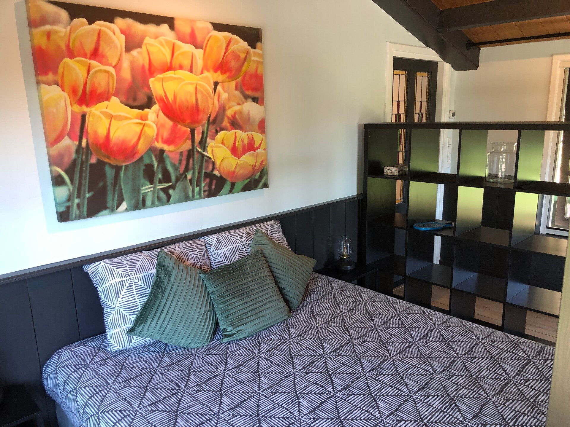 Het Chalet, met een oppervlakte van 46 m², is deels geïntegreerd in de schuur, een ruimte die oorspronkelijk is gebouwd als varkensstal, maar nooit als zodanig in gebruik is geweest. Deze knusse en lichte accommodatie biedt een unieke combinatie van charme en comfort. Met uitzicht op de vijver, de tuin en het aanliggende weiland, is het Chalet een heerlijke plek om te ontspannen. U beschikt over een privéterras en een overkapping waar u beschut kunt zitten. Uw auto parkeert u gemakkelijk op het nabijgelegen parkeerterrein. Dankzij de ventilator, te openen ramen en insectenhorren geniet u zelfs in de zomer van een aangenaam binnenklimaat. Het Chalet is volledig uitgerust om u een comfortabel en zorgeloos verblijf te bieden.
